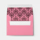 Use this custom pink envelope in place of the generic white envelopes that come standard with all of the cards and invitations in the classic damask wedding set. This personalised pink wedding envelope includes a pre-printed address on the front and a damask pattern on the inside. The default size is 5 3/4" W x 4 3/8 H (A2) and fits the small greeting cards and invitations. You can order a different size by selecting "customise it" and "Choose your paper type and colour". A7 fits 5x7 invitations and cards. A6 is for the small invitation, but will also fit the small greeting card (note card). A2 is for the small greeting card (note card), but will also fit the small invitation. We also offer this envelope design without the printed address if you would rather write your own or use address labels.