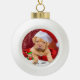 Custom Pitbull Puppy Dog Photo with Cute Elf Ceramic Ball Christmas Ornament