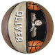 Modern Custom Player Name Wood Floor Photo Basketball. Custom photo and two basketballs on each side. Bright basketball court with wooden floor. Personalise it with the player's name and photo. A great personalised basketball keepsake to remember the favourite sport.