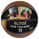 Custom Player's Name Number Team 2 Photo Basketball. Personalize it with your 2 photos, name, team name, your team number and the year. The text is trendy white bold font on a black background. You can change any text on the basketball or erase it. A perfect gift for a basketball player, teammates, coach, your friends and family. Great keepsake to remember your favorite sport.