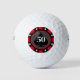 Custom poker chip golf ball gift set for men. Las Vegas casino marker coin design with spade icon. Customisable colours. Red example. Personalise with name, monogram, initials, dollar amount, age or lucky number. Classy typography. Unique gifts for Birthday, Christmas and more.