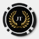 Poker chips are shown with sample initials and a gold winner wreath.