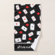 Bold poker playing card hand towel featuring a scattered card and red diamond pattern on a black background. Perfect for poker players, casino lovers, or game night enthusiasts. Personalise with your name for a unique accessory to use at home, at tournaments, or as a fun gift. Great for birthdays, Father’s Day, or bachelor parties. Available in multiple sizes, making it a versatile and memorable present for card lovers.