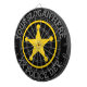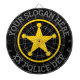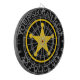 Custom police department law enforcement dartboard. Custom wall decor personalised with your name, precinct, force, county, jail, correction facility, prison etc. Yellow police star badge with round text. All customisable colours. Fun darts game for home, office, work place, garage, bar, cafe, pub, kid's Birthday party, garden etc. To protect and to serve.