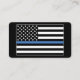 This design features a police force flag theme with a thin blue line stripe. Customise with the name, position, and contact information of the law enforcement officer, sheriff, captain, chief or any employee working at the police department. Features a thin blue line flag on the back.