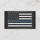 This design features a police force flag theme with a thin blue line stripe. Customize with the name, position, and contact information of the law enforcement officer, sheriff, captain, chief or any employee working at the police department. Features a thin blue line flag on the back.