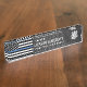 This design features a police force flag with black and white stripes, and a thin blue line stripe as well. This name plate is great for a law enforcement officer, sheriff, captain, chief or any position helping in the police department.