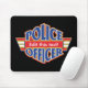 Police Officer gift with custom text area you can edit to add you name, department name or number! Police Officer text in red, white, blue and yellow colours with matching bar background! centre of the design is a red rectangle that you can edit the text! Create a custom gift for your favourite police officer! great for law enforcement families, create a police officer mum, dad, son design and more!