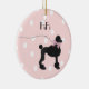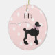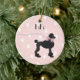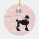 Fun round Christmas tree ornament done in pink with white polka dots. Graphics of a black poodle, with pink lease and bow decorates the front and back of the ornament. Personalise with your pet poodles name for a charming holiday ornament all their own.