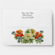 Custom card or invitation envelopes with script letters on the back for your return address and pretty vintage floral art of white and red poppies with blue cornflowers on the front and lining the inside.