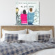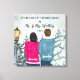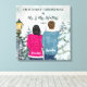 Personalised Mr. Mrs. Our First Christmas Married wall art features magical snowy forest scene with married couple standing in the snow among Christmas pine trees and a lamp post. Easy to personalise with the couples' married name, each person's name and year. A truly unique 1st christmas married keepsake for newlyweds this holiday. Find other colour combinations in our shop.