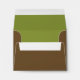 Use this custom envelope in place of the generic white envelopes that come standard with all of the cards and invitations in the Floral Vines Wedding Collection. This brown envelope features a green interior and a pre-printed return address on the front. You can easily customise the address on the product order page. The default size is 5 3/4" W x 4 3/8 H (A2) and fits the small greeting cards and invitations. You can order a different size by selecting "customise it" and "Choose your paper type and colour". A7 fits 5x7 invitations and cards. A6 is for the small invitation, but will also fit the small greeting card (note card). A2 is for the small greeting card (note card), but will also fit the small invitation. We also offer this envelope design without the printed address if you would rather write your own or use address labels.