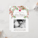 A floral heart shape baby shower invitation with a cute handwritten type and custom pregancy photo with pregnant mum and dad feeling her belly. Personalise with your own photo and information. Red and green flowers and a red heart.