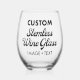 Design your own custom printed personalised 16 oz Stemless Wine Glass, 4.25" high x 3.375". Create your own personalised stable glassware that won't blow over in the wind. Hand wash only. Make your own fully customisable Stemless Wine Glass for outdoor dining, by personalising the front, back or full wrap all around the glass custom printed with your photo, image, design, logo, plus add text.