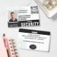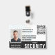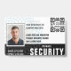 Customisable security badge with a geometric background pattern. Personalise with your ID photo, employee number, job title, company name, logo, issue date, expiration date, and a QR code or barcode. Ideal for various workplaces and professions such as private security guard, close protection officer, store security, personal bodyguard, official doorman, retail worker, medical staff pass, and more. Printed colours: blue, gold, black and white. Shop the collection for more badges and tags for sale online, designed for the security service industry.