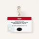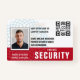 Customisable security badge with a geometric background pattern. Personalise with your ID photo, employee number, job title, company name, logo, issue date, expiration date, and a QR code or barcode. Ideal for various workplaces and professions such as private security guard, close protection officer, store security, personal bodyguard, official doorman, retail worker, medical staff pass, and more. Printed colours: red, blue, gold, black and white. Shop the collection for more badges and tags for sale online, designed for the security service industry.