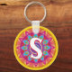 Custom psychedelic initial button key ring yellows
