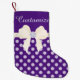 Custom Purple Dotted w/Cream Bow & Diamonds Small Christmas Stocking