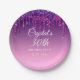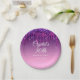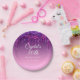 Custom Purple Glitter Drip Happy Birthday Paper Plate