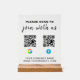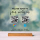 Modern and minimalist acrylic sign featuring a custom QR code for your business. Perfect for small businesses, offices, stores, studios, and restaurants. Use it for scan-to-pay, contactless payment, mobile checkout, or promotional purposes. The clean clear acrylic design ensures your branding looks professional, simple, and highly visible on tabletops, counters, and shop fronts.