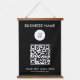 Customisable Template Upload Your Business Company Logo Here Add Text QR Code Elegant Modern Wood Topped Vertical Black One Panel Wall Tapestry.