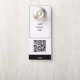 Custom qr code business simple minimalist white and black door hanger card. Add you text, photo, image, picture ; personalise the door hanger card with qr code , logo, website, message , information. For small business, companies, hotels,, promotion marketing tool for customers, visitors. Change text, and personalise with your business or personal information. Promotion item and supply for companies, stores, librairies, small organisations, shops, events