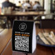 Give your restaurant, café, or food truck a modern upgrade with this custom black QR code menu sign, designed to make contactless dining simple. Guests can scan to view your digital menu in seconds—no printed menus required! This tabletop display is perfect for restaurants, coffee shops, bars, bakeries, and catering events. The clean, customizable design lets you add your logo, QR code, and brand colors to match your aesthetic. You can easily change the text and background colors to coordinate with your business branding or seasonal décor. Lightweight, portable, and easy to set up on any counter or table, this paper table tent keeps your space tidy while improving guest convenience and hygiene.