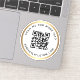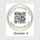 White vinyl decal with your custom QR code and two lines of custom text inside a printed golden gradient border with a (simulated in the artwork) brushed metal effect. Great for business to let their customers scan for more info, deals, online menu, to pay etc. The stickers are fade proof, water proof and scratch resistant.
