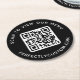 Black paper coaster with your custom QR code and two lines of custom text. Great for events or business to let their customers scan for more info, deals, online menu, to pay etc.