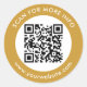 Custom QR Code Text Black White Gold Classic Round Sticker