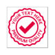 Custom quality approval checkmark seal self-inking stamp. Personalise with custom 100% guarantee text or business name. Circle stamp of approval design with tick ✔. Great for official documents, authentic diplomas, certificates, tags and more. Colours and font can be changed. Red example.