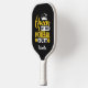 This Pickleball paddle featuring a crown and pickleballs and "Queen of The Pickleball Court" written in white and yellow font on black background is a perfect gift for a Pickleball lover. You can customise this design with your or your loved one's name, or remove the name by clicking "Personalise this template" button. Click "Edit Using Design Tool" to change text fonts and colours to create your own unique one of a kind design.