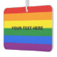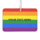 Custom rainbow flag car air freshener. Flag with custom text for name, funny quote or monogram. Gay pride symbol design to refresh your auto with different cool scents to mask dog / pet smell and other dirty stinky odours. Unique gift idea for men and women. Create your own for dad, mum, mother, father, uncle, grandpa, brother, son, sister, wife etc. Custom air refreshener with customisable template. Make it smell like a fresh new car or the sea. Double sided design. Make your own slogan or saying.