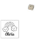 This "Signature" rubber stamp features a rainbow with a custom name.