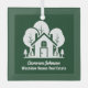 This forest real estate company Christmas ornament gift is perfectly customised for a realtor who is having an open house near the wilderness or woodlands. The green silhouette of trees behind a log cabin home and personalised with your agent and realty business name for marketing in the backwoods.