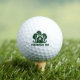 This forest real estate company golf ball is perfectly customised for a realtor who specialised in houses near the wilderness or woodlands. The green silhouette of trees behind a log cabin home and personalised with your agent and realty business name for marketing in the backwoods.
