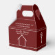 This modern realtor custom favour box is the perfect way to congratulate a homebuyer on their new house purchase. Congratulations on your new home or a different custom message for open house marketing.. These minimalist burgundy red and white boxes feature a simple line drawing of a house for a simple, chic real estate agency business.