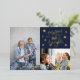 Send sparkling holiday cheer with a personalised real foil “Merry and Bright” Christmas card. The front features three favourite family photos on a rich navy blue background nestling the in elegant script calligraphy decorated with stars also in real foil. Personalised with your family name and year. The back gives you even more room to shine with a full photo printed all over. A festive way to wish Merry Christmas, Happy Holidays, and a Happy New Year.
