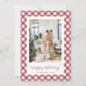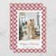 Custom red and white plaid photo holiday cards featuring a red and white chequered pattern. Easily personalise these gingham check photo holiday cards with your photo and family name.