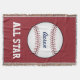 A traditional baseball decorates this red throw blanket. Personalise this blanket by changing the name. This blanket is great for a baseball fan, baseball lover, bedroom, men, teens, boys, kids, dorm, Father's day, sports fan, etc....The design is from original art.