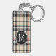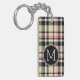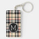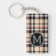 Custom Red Beige Black White Squares Plaid Pattern Key Ring