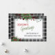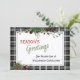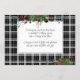 Unique, classic, trendy, pretty and decorative corporate Holiday card. Cute Happy Holidays greeting text and room to customise or personalise with a message of your choice on the rear of the card. Framed by Burgundy wine red berries and dark green foliage wreath bouquets on a classy black and white plaid tartan gingham pattern background.