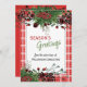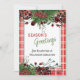 Unique, classic, trendy, pretty and decorative corporate Holiday card. Cute Happy Holidays greeting text and room to customise or personalise with a message of your choice on the rear of the card. Framed by Burgundy wine red berries and dark green foliage wreath bouquets on a classy red and white plaid tartan gingham pattern background.