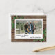 Unique, classic, trendy, pretty and decorative Holiday card. Cute Happy Holidays greeting text and room to customise or personalise with a photo, family name (or individual names) and message of your choice. Framed by Burgundy wine red berries and dark green foliage wreath bouquets on a classy rustic country cottage farmhouse style barnwood wooden planks pattern background.