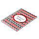 This modern design features a red, black and white chevron pattern as a background with an oval overlay with matching highlights. There is customisable text in the centre of the oval for you to add your name or subject name.
