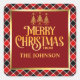 CUSTOM Red Black Plaid Gold Merry Christmas Square Sticker