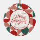 Custom Red Christmas Geometric Pattern Photo Ceramic Tree Decoration