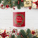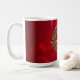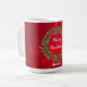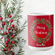 Sip the season in style with this customisable Christmas mug featuring a rich red background and a festive greenery wreath-style round frame.