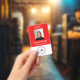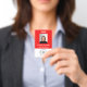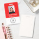Custom red Employee Badge with Photo, Logo, QR ID Badge