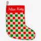Custom Red Green Paw Print Chequered Pattern Pet Small Christmas Stocking